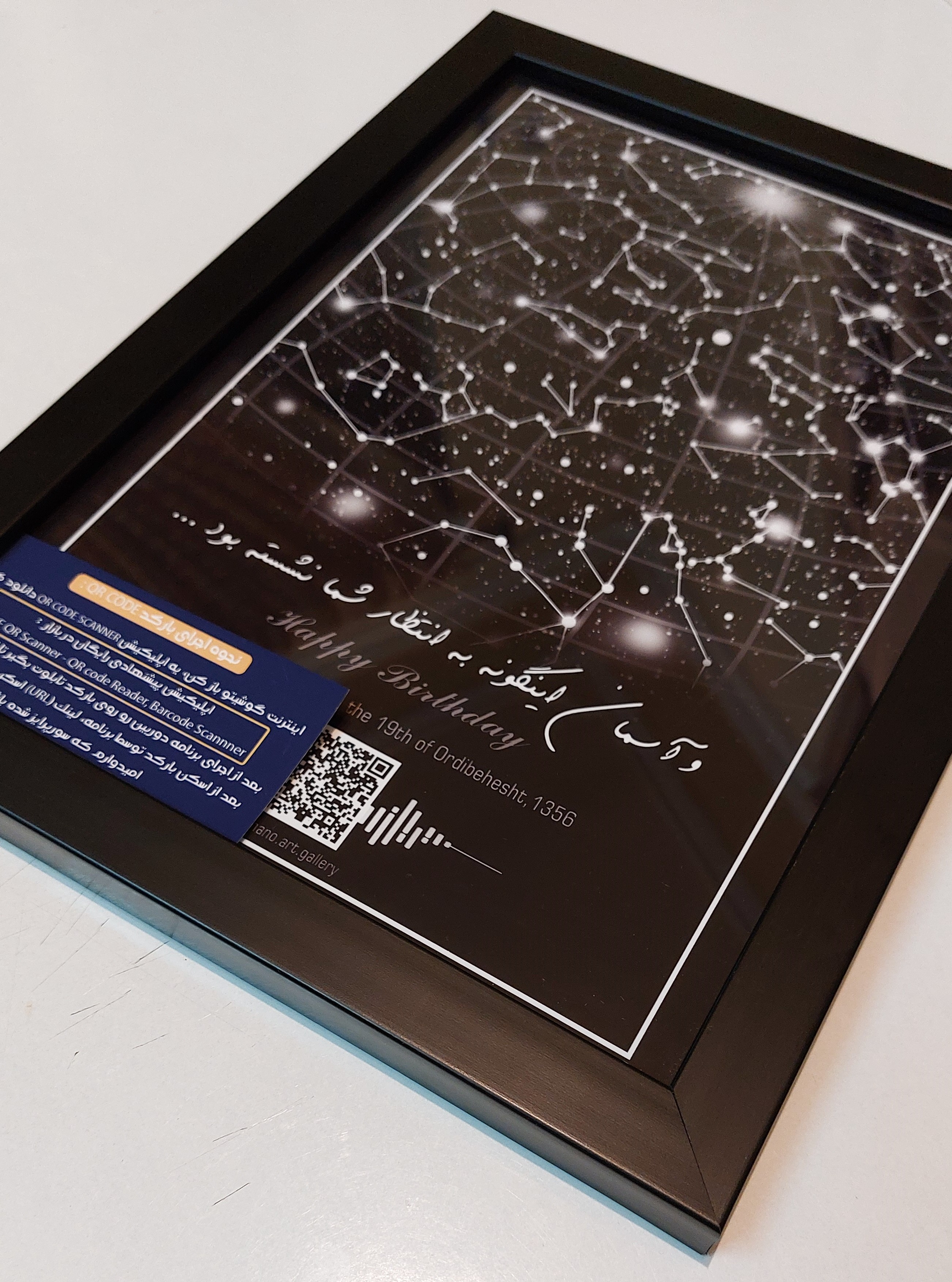 این تابلو به تاریخ، یک عکس بصورت فایل (اختیاری) یک آهنگ یا ویس برای بارکد(اختیاری)، یک متن یا جمله نیاز داره.