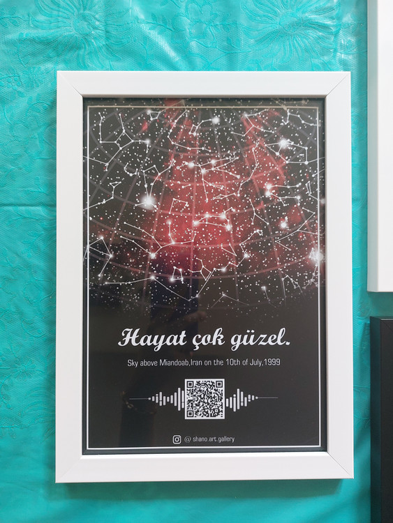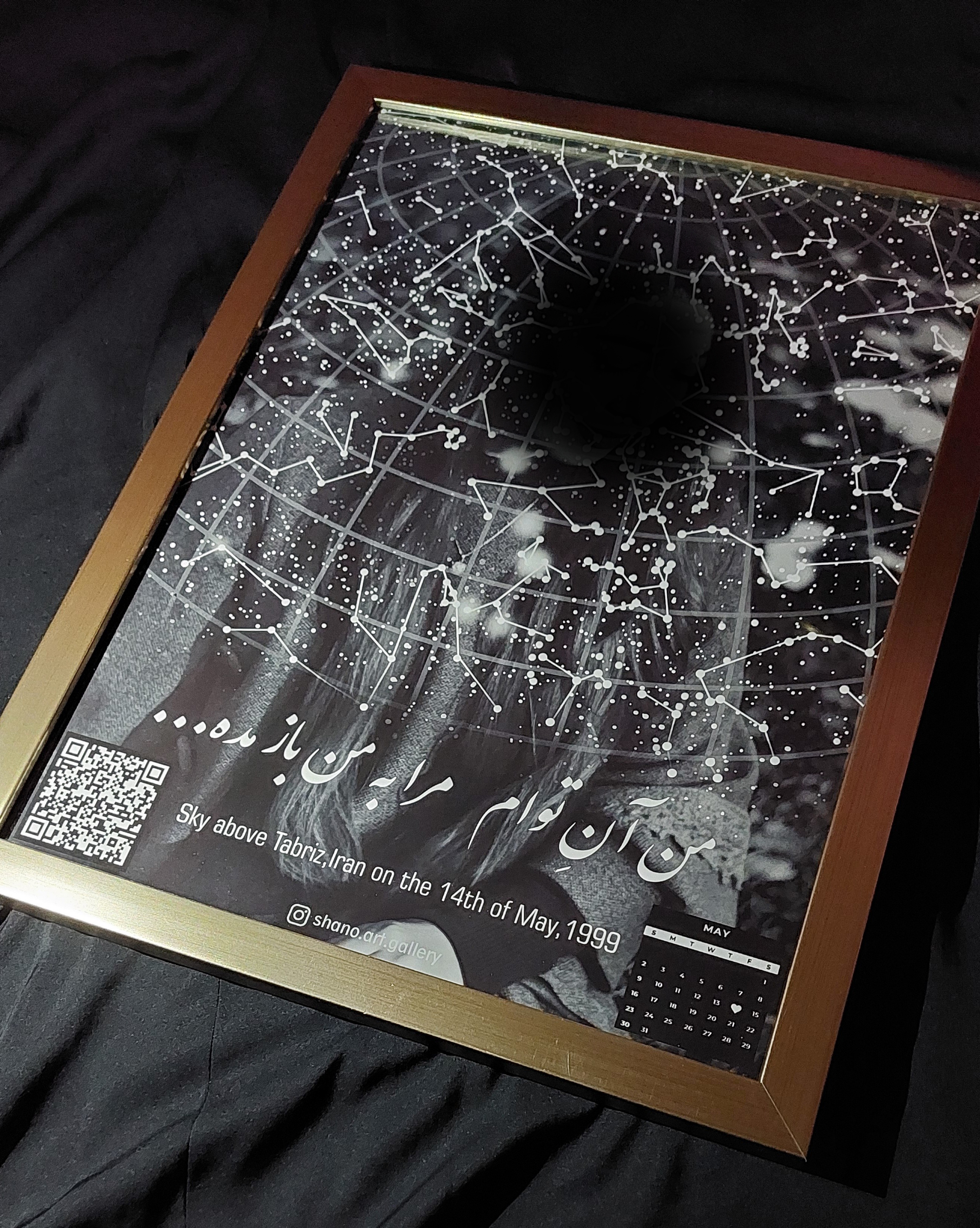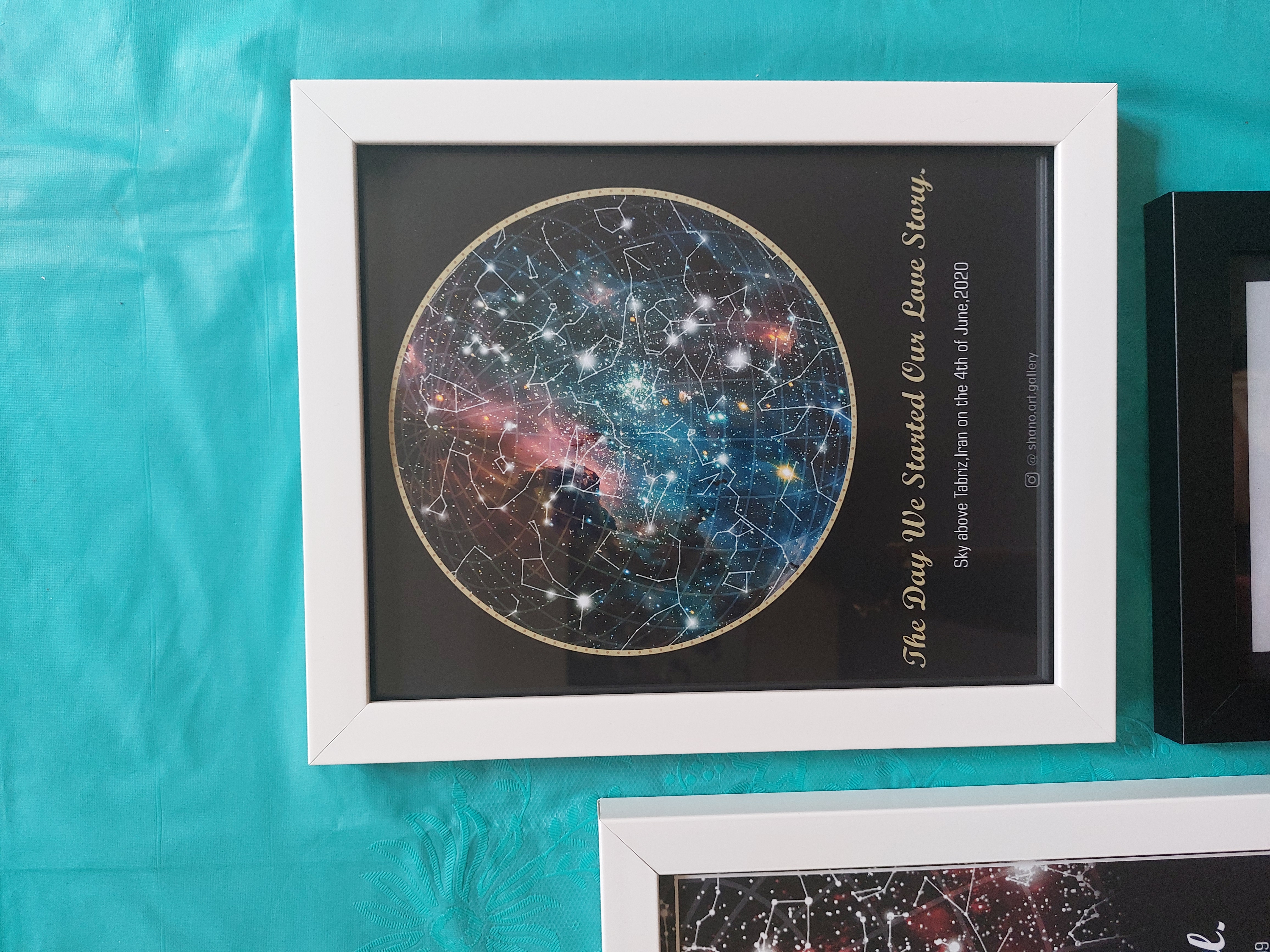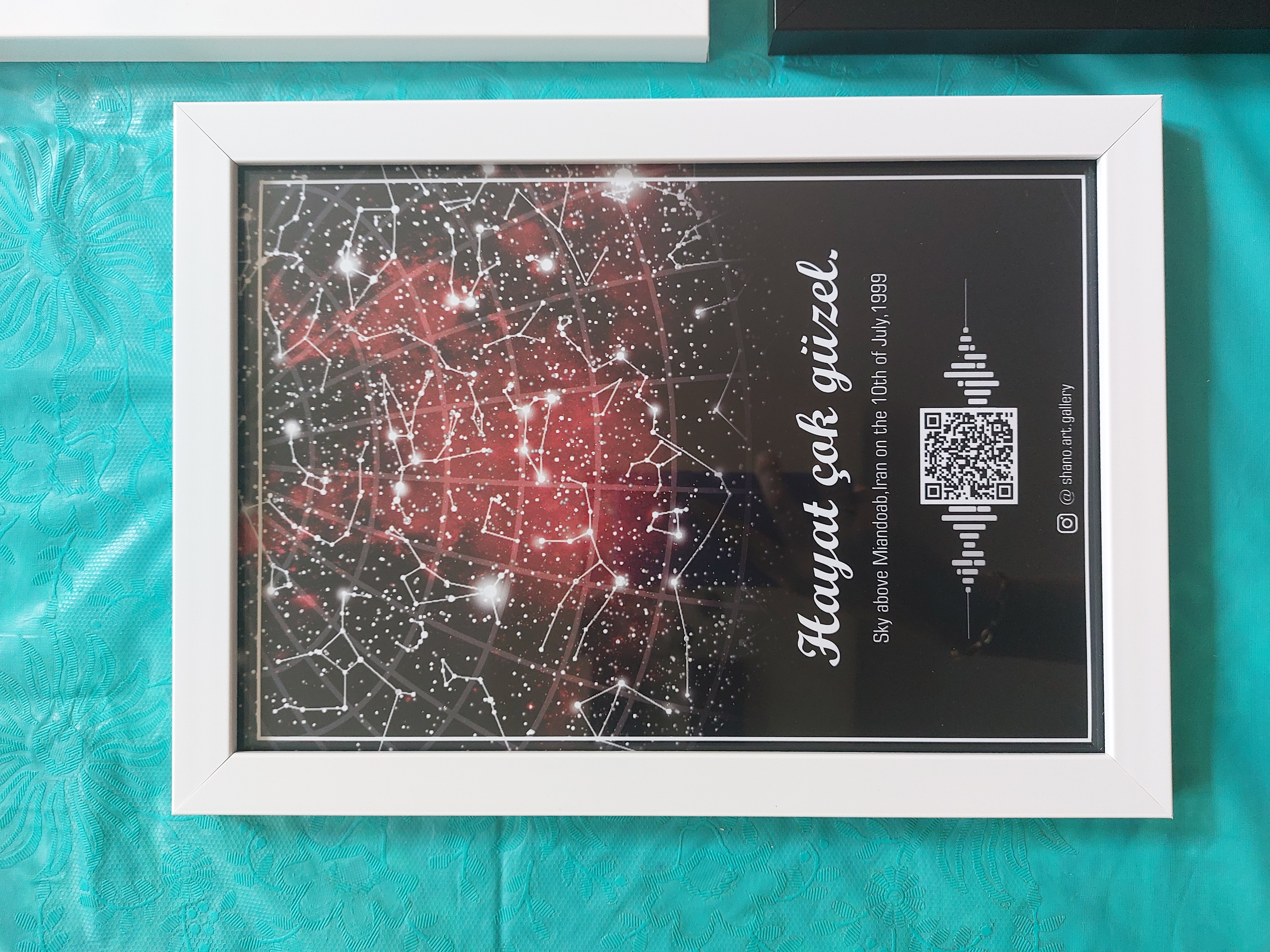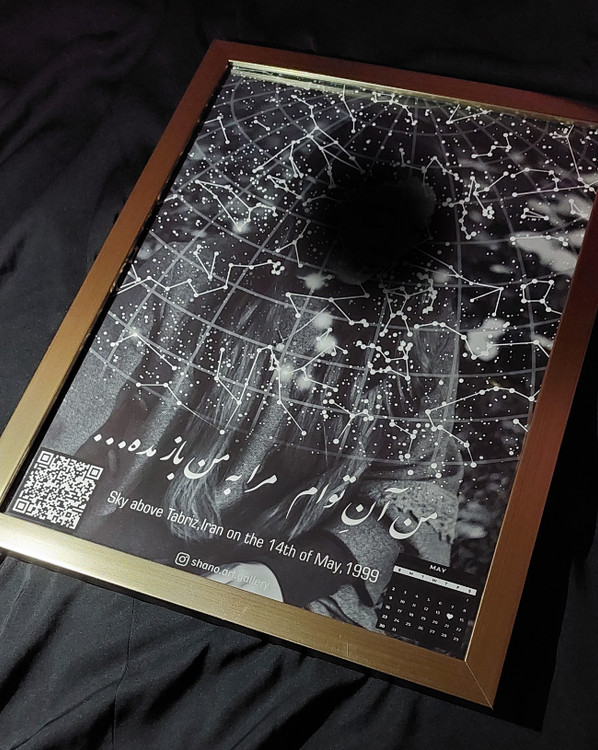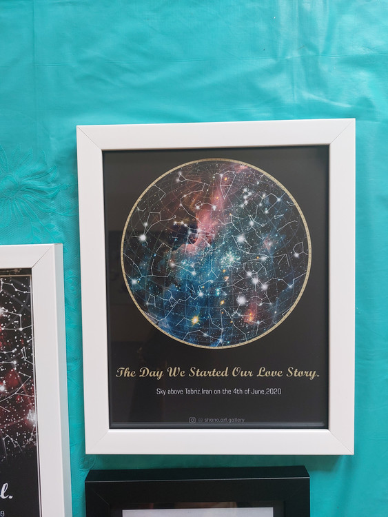 چیدمان ستارگان آسمان در شب خاطره انگیز و بیاد موندنی شما با اطلاعات دقیق از سایت های نجومی و چاشنی خلاقیت ثبت میشود. قابل اجرا در تم های مختلف و هر سایز دلخواه