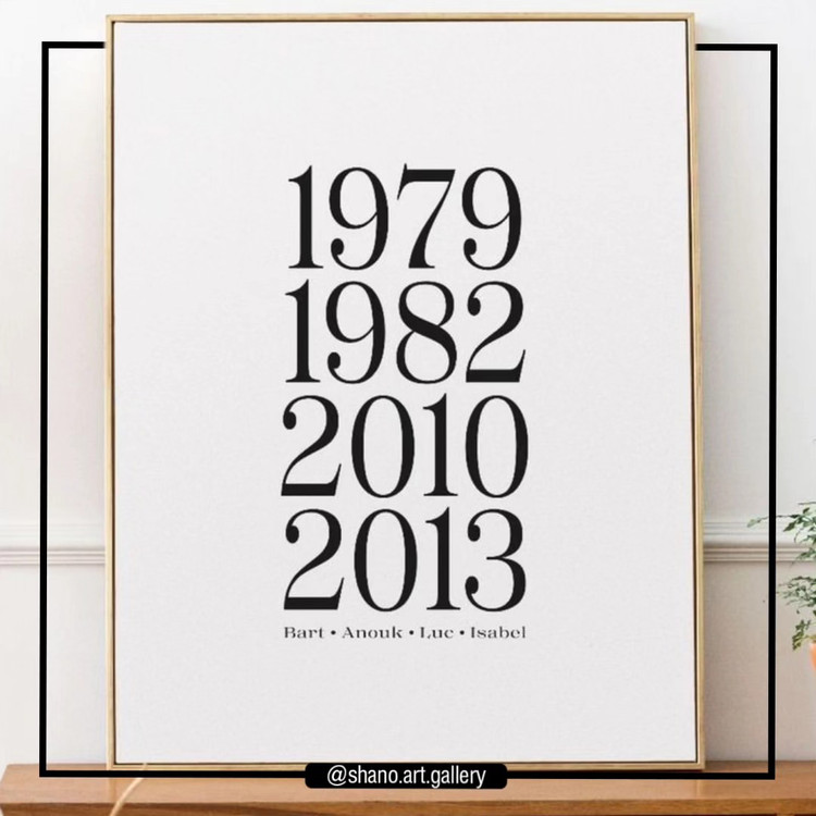 جدیدترین محصول و از ترند ترین هاست که مشابهش فقط تو پینترست پیدا میشه قابل اجرا در هر سایز دلخواه (از سایز ۱۵×۱۰ تا سایز ۱۰۰×۷۰ ) میتونید تاریخ های زیر رو ثبت کنید: تولد خودتون یا عزیزانتون، فارغ التحصیلی، مهاجرت،آشنایی،نامزدی،عقد،عروسی، به دنیا اومدن فرزندان و جهت اطلاع از و ثبت بدید.